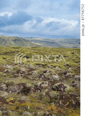The landscape of Eldhraun lava moss field in Iceland. This impressive lava field the biggest lava flow in the world.