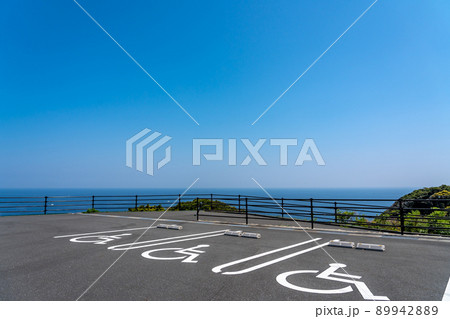 高知県土佐清水市 足摺岬展望台にある車椅子用駐車場の白いライン