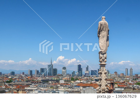 ミラノのドゥオーモの屋根から眺めるミラノ市街