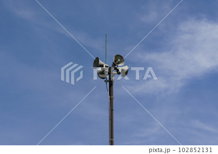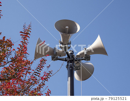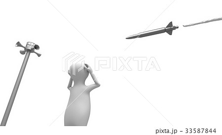 弾道ミサイルが発射され防災行政無線のサイレンが鳴るイラスト