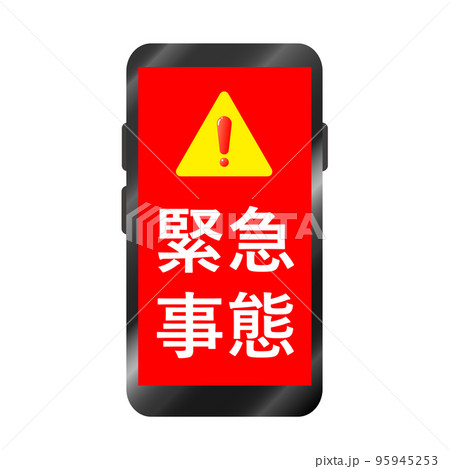 緊急速報のアラームがなるスマートフォンのアイコンセット。日本語標記。