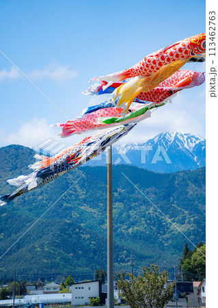 【初夏素材】大空を泳ぐ鯉のぼり【長野県】