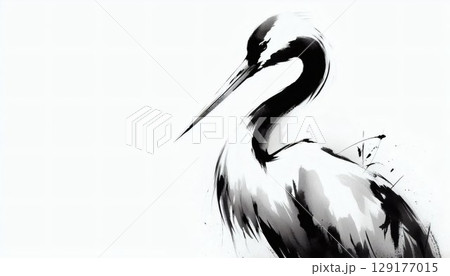 水墨画の鶴、シンプルな線で表現された上品なアート
