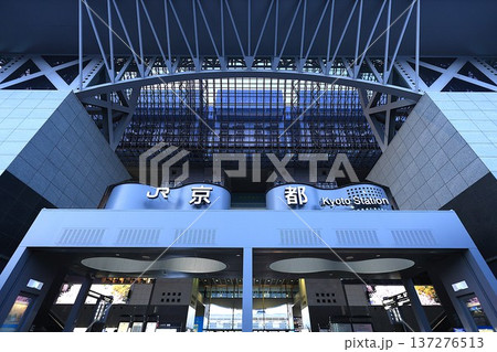 京都府 京都駅屋上広場への大階段より望む中央口コンコースと京都タワー