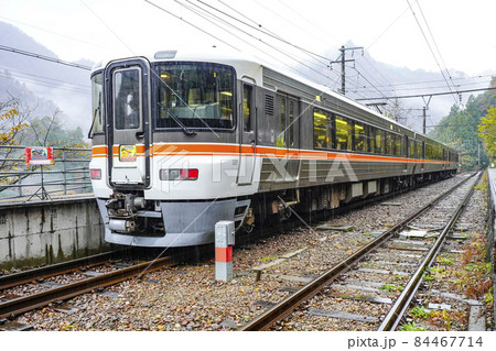 雨の秘境駅巡り、伊那小沢駅に停車中の飯田線秘境駅号
