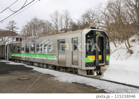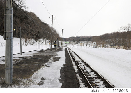 どんよりとした厳寒の2月、数人の乗降客を待ち受けるJR函館本線小沢駅