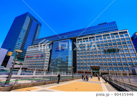 日本の東京都市景観 JR新宿ミライナタワーや新宿高島屋(渋谷区)、NTTドコモ代々木ビル、電車など