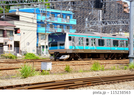 京急の花月総持寺駅付近を走行する高崎線直通の東海道線(横浜市鶴見区)