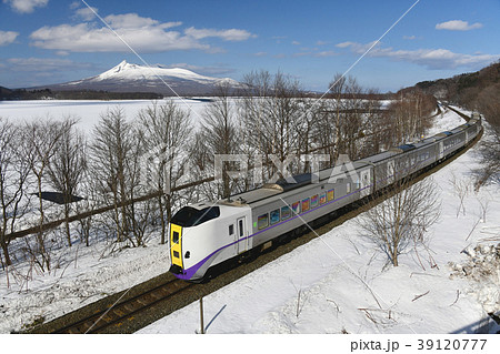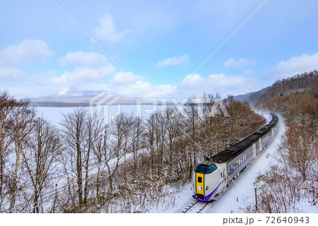 冬の北海道駒ヶ岳と特急列車