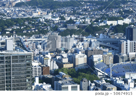 日本の横浜都市景観 横浜スタジアムや横浜市役所などを望む=2019年(平成31年)1月27日撮影