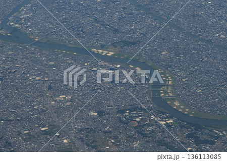 江戸川と市川市周辺の航空写真 都市と河川の俯瞰