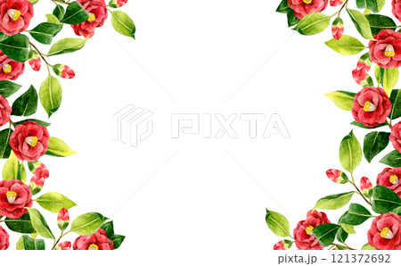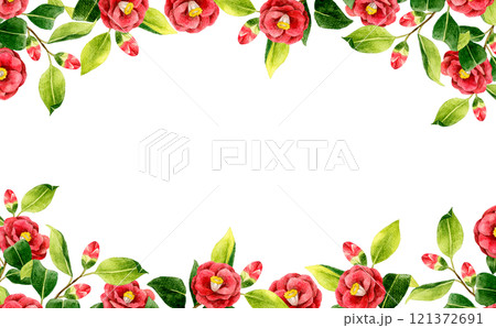 水彩風_ シンプルなツバキ、カメリアのフレームイラスト