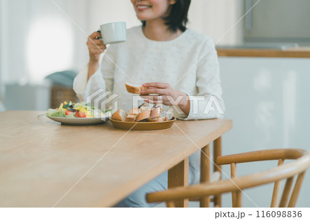 朝御飯を食べる若い女性