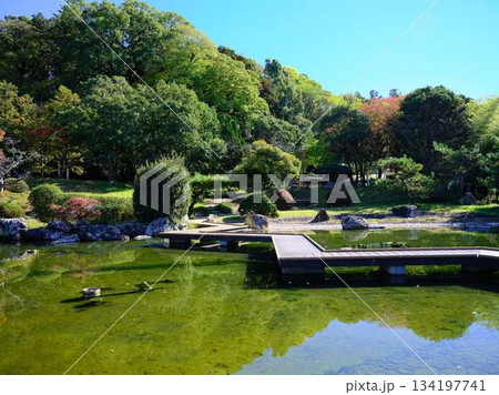 堺市大仙公園内の日本庭園の秋の風景