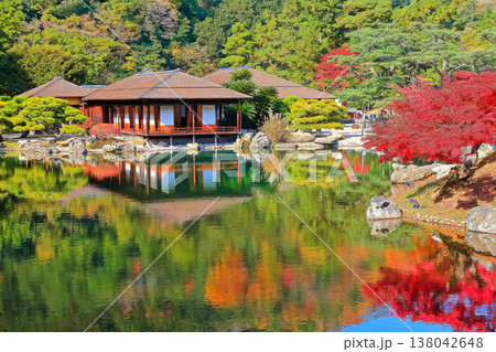 【香川県】紅葉した秋の栗林公園(特別名勝)