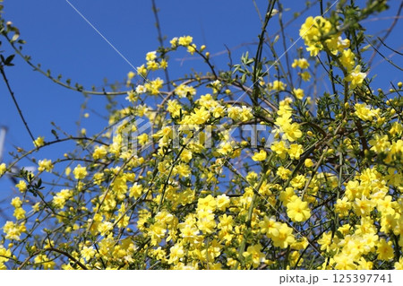 公園に咲いているこれらの黄色い花の名前は雲南黄梅(ウンナンオウバイ)です。