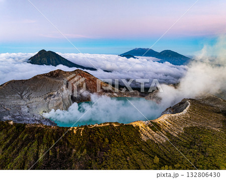 Drone view over Kawah Ijen crater in Banyuwangi East Java