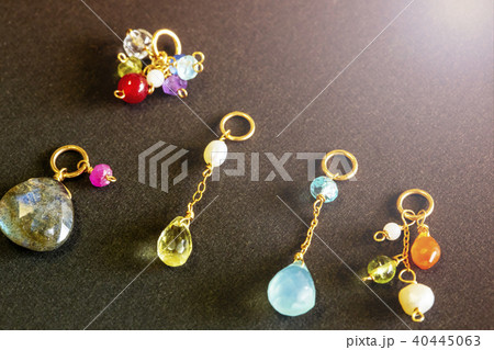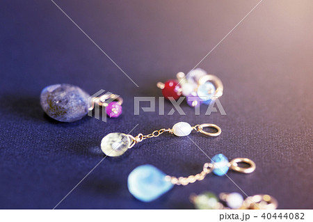 小宇宙のように光る天然石のネックレスとカラフルバック