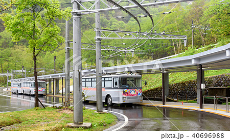 黒部ダム駅に停車中のトロリーバス 300系