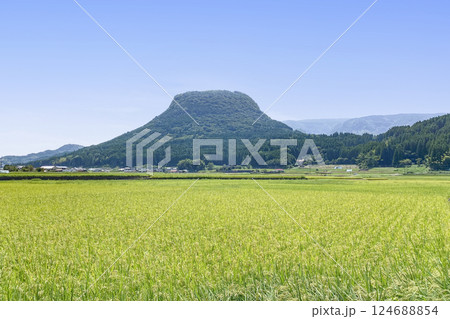 木材の町玖珠町風景 伐株山685.5m 玖珠町のシンボル伐株山 大分県玖珠町