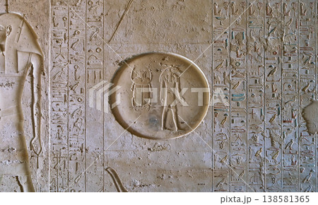 円形レリーフが刻まれた、王家の谷KV15セト2世墓の壁面