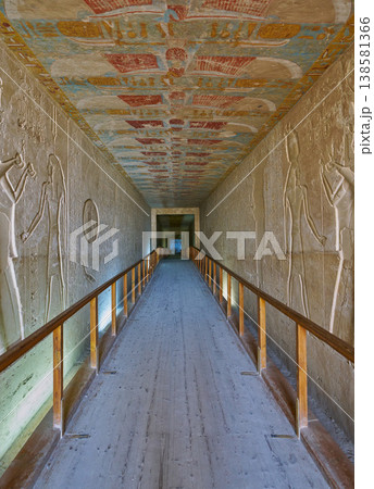 天井彩画が続く回廊——王家の谷KV15(セト2世墓)内部の遠近構図