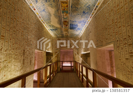王家の谷KV2、ラムセス4世墓の彩色天井と回廊
