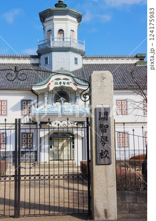 中部地方・松本・文明開化の歴史的建造物、正面から眺める国宝旧開智学校校舎・長野県松本市(1)