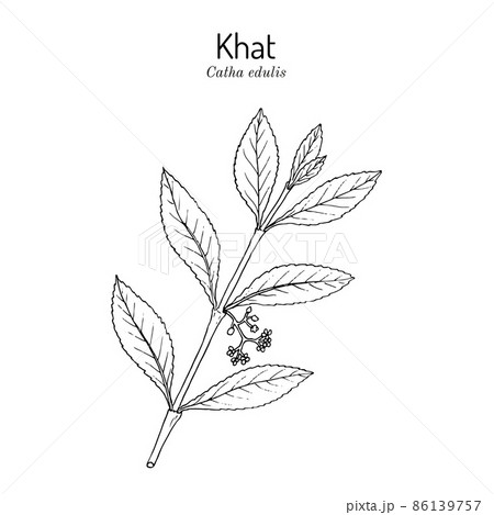 Close-up view of qat aka chat plant, local stimulant leaves, Yemen