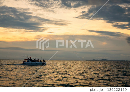 sihouette tourist people in yacht to view sunset at Koh Larn, Pattaya