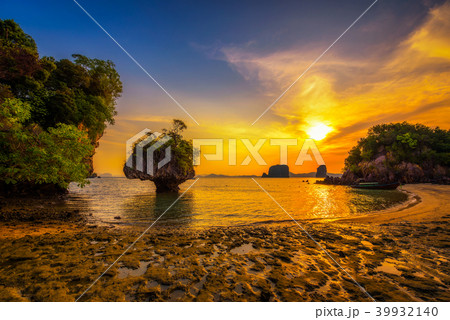 Sunset over Laopilae archipelago around Ko Hong island near Krabi, Thailand