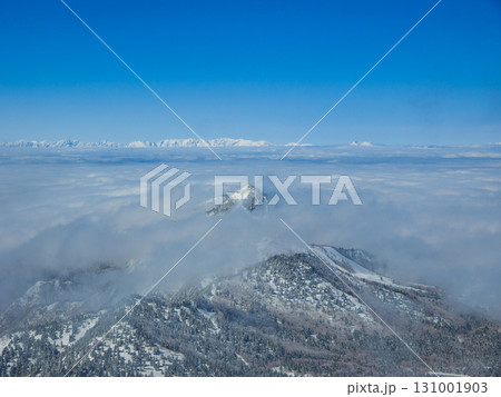 横手山山頂から望む雲海に覆われた笠ヶ岳の冬景色 (長野県、山ノ内町)