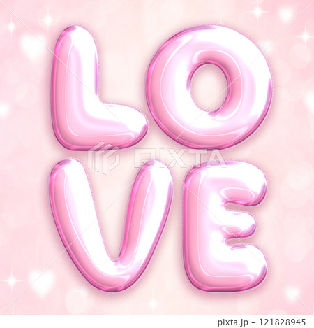 Bright light pink air celebrated balloons word LOVE with heart and star square background