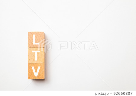 LTVの文字。ライフタイムバリュー。Life Time Value。3つの木製ブロックに書かれた