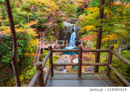 秋の山梨県山梨市 紅葉の西沢渓谷 不動滝