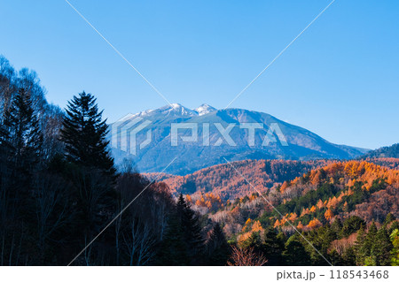 秋の長野県茅野市 紅葉の御射鹿池