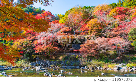 【京都府】晴天の紅葉の嵐山(桂川の嵐峡 保津峡)