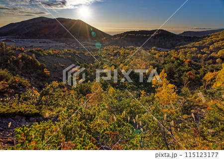 吾妻連峰・酸ヶ平への登りから見る朝の浄土平と吾妻小富士