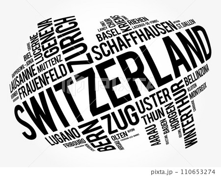 List of cities and towns in Switzerland, word cloud collage, business and travel concept background
