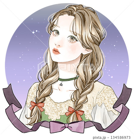 星座占い・シンプルな十二星座の女の子(フレームあり)