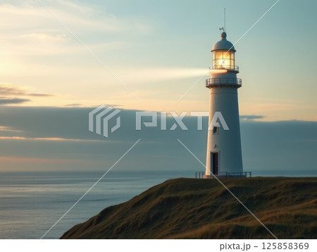 Lighthouse Beam at Tranquil Dusk or Dawn