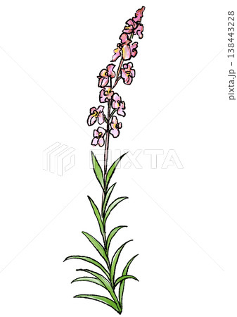 咲き誇るリナリアの花の手描きの線画と水彩イラスト