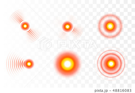 Pain circle. Red pain sonar circles, human pain localisation rings vector illustration set. Medical pain sonar circles