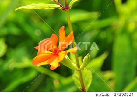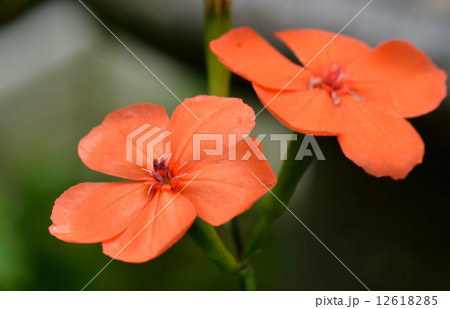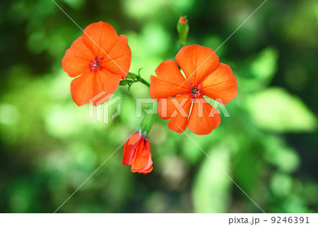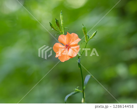 フシグロセンノウ 山野草 オレンジ色の花 緑の自然背景