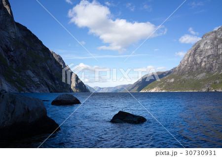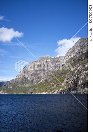 シェラーグ山の崖下から見たリーセフィヨルド(ノルウェー)