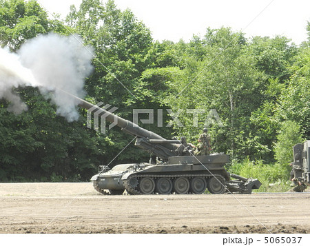 陸上自衛隊榴弾砲の射撃準備完了