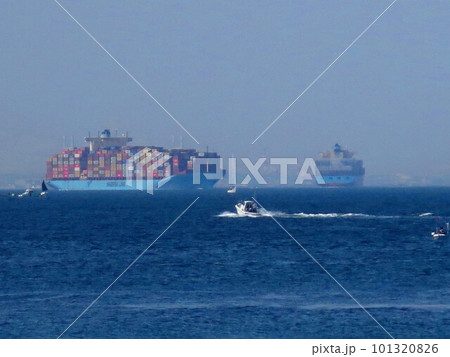 浦賀水道ですれ違うMAERSKの大型コンテナ船