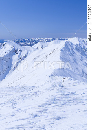 厳冬の谷川岳より望む谷川連峰主稜線の絶景・雪山登山