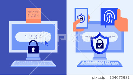 Two-factor authorization to log in. A smartphone and a computer with a lock. 2FA security check. Checking the login password. Vector illustration