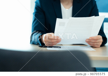 Close up high angle Asian businesswoman working with her coworker in meeting room